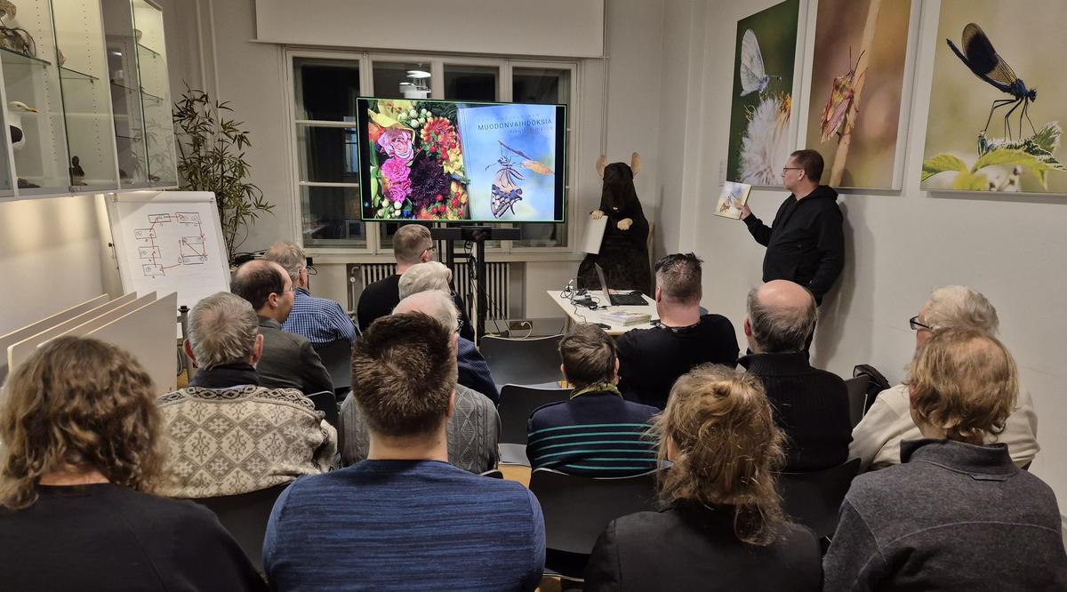 Marraskuun hyönteisillassa kuultiin Sami Karjalaisen esitys hänen uusimmasta kirjastaan Muodonvaihdoksia ihmettelemässä. Kirja ilmestyi tammikuussa 2025 ja on ehdolla Tietokirjallisuuden Finlandia -palkinnon saajaksi.